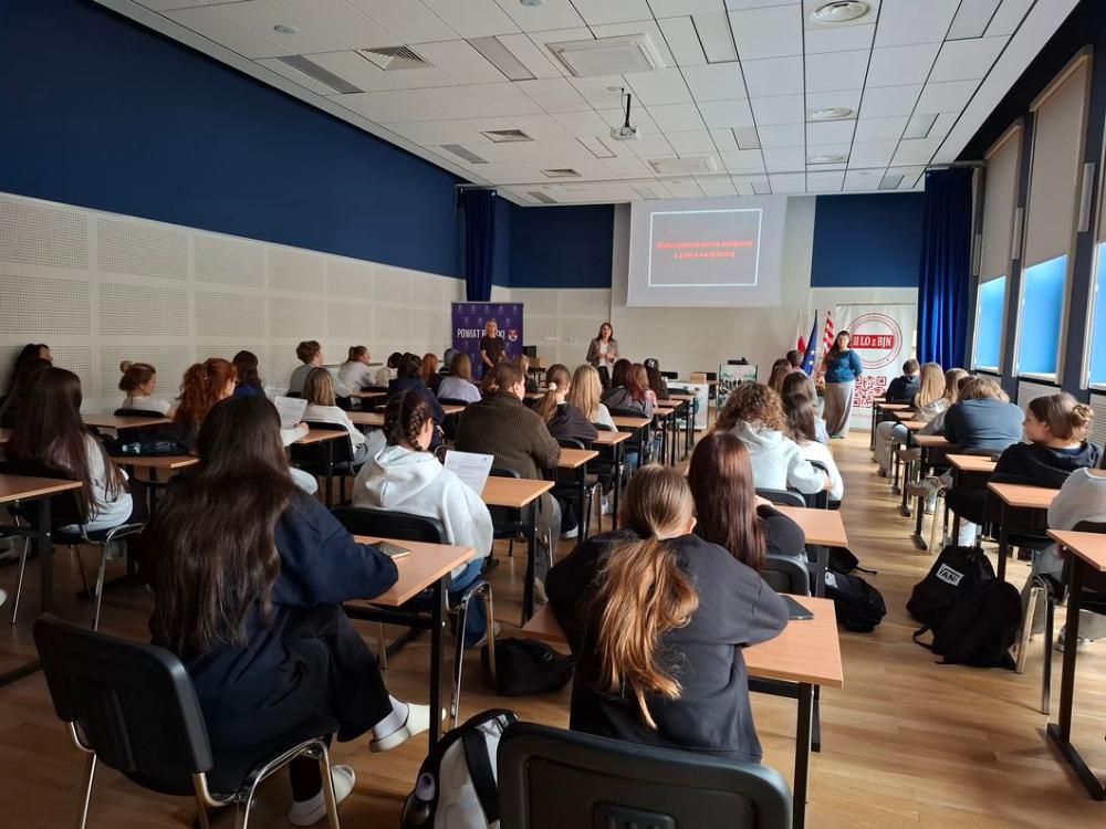 W dniu 17 października 2025 r. Komenda Powiatowa Policji w Bielsku Podlaskim wspólnie z pracownikiem Powiatowego Urzędu Pracy w Bielsku Podlaskim przeprowadziła spotkanie informacyjne z młodzieżą II Liceum Ogólnokształcącego im. Bronisława Taraszkiewicza.