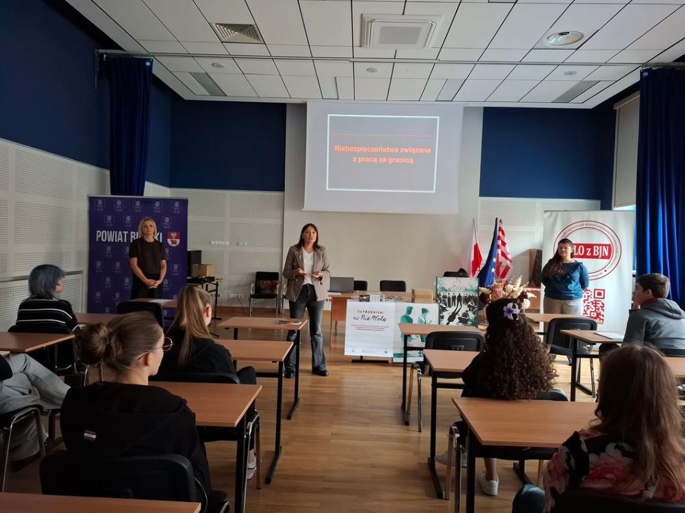 Celem spotkania było uświadomienie uczniom zagrożeń związanych z handlem ludźmi oraz przekazanie informacji na temat bezpiecznych wyjazdów do pracy za granicę. Przedstawiciel Powiatowej Komendy Powiatowej Policji w Bielsku Podlaskim omówił kwestie dotyczące metod działania sprawców przestępstw i sposobów unikania sytuacji niebezpiecznych, natomiast pracownik urzędu pracy przedstawił możliwości legalnego zatrudnienia w krajach Unii Europejskiej w ramach sieci EURES oraz zasady bezpiecznego podejmowania pracy poza granicami kraju.