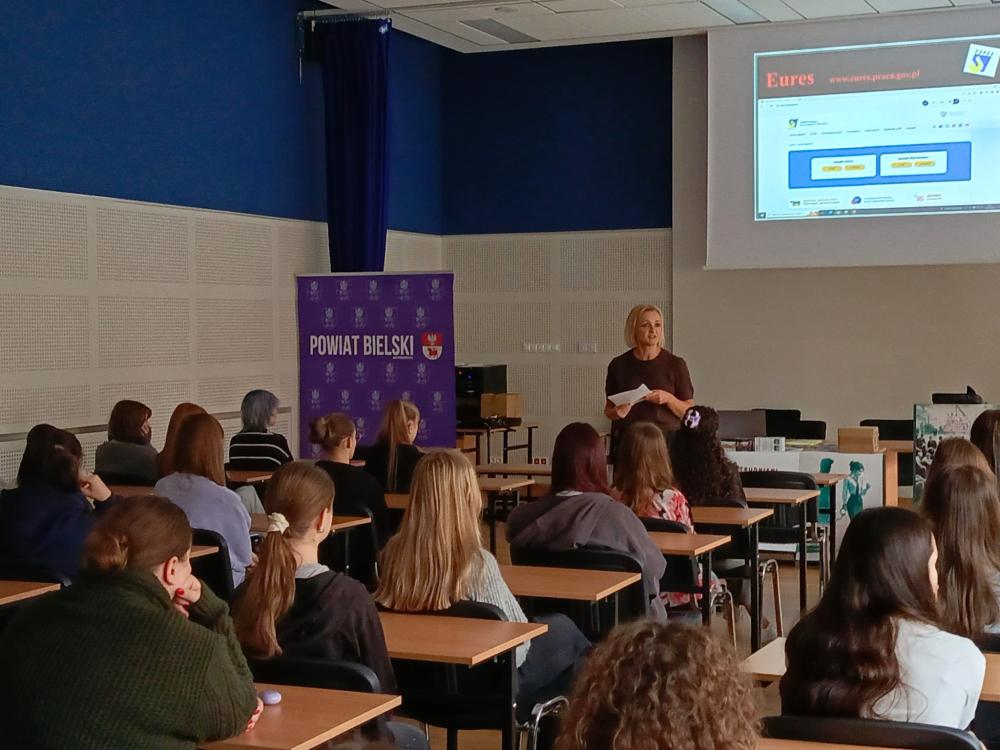 Spotkanie informacyjne z młodzieżą II Liceum Ogólnokształcącego im. Bronisława Taraszkiewicza w Bielsku Podlaskim - Powiatowy Urząd Pracy w Bielsku Podlaskim
