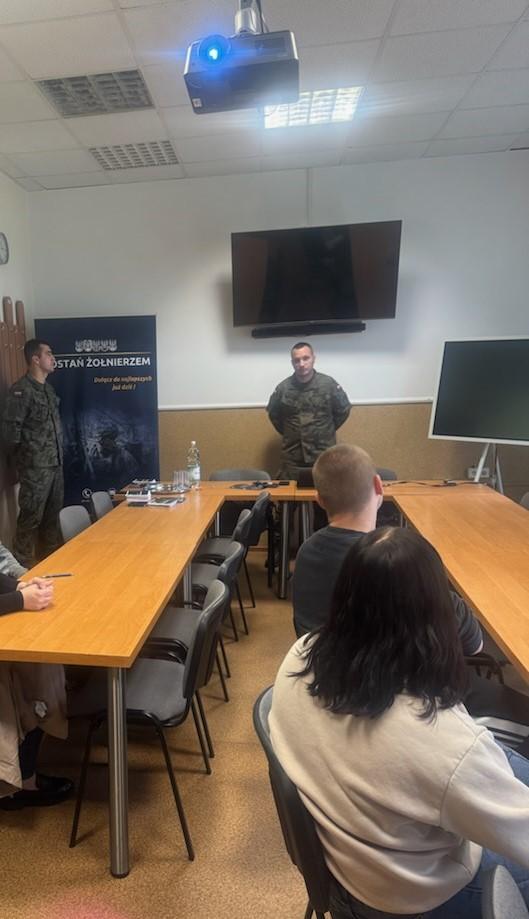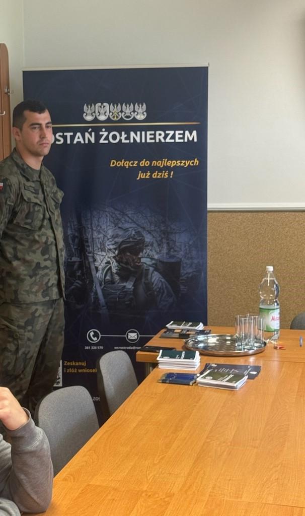 Prelegenci udzielili informacji na temat możliwości rozwoju w zawodzie w tym szkoleń oraz studiów wojskowych i studium wojskowego.