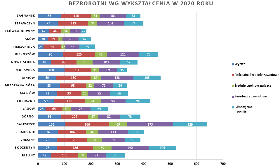 Statystyki - Stan bezrobocia w gminach 2020 - Powiatowy Urząd Pracy w Kielcach