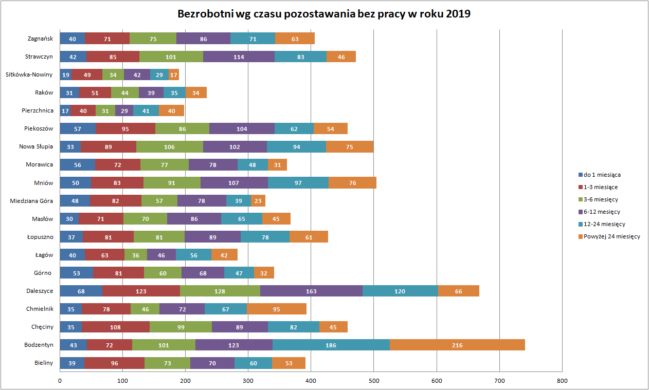 Statystyki - Stan bezrobocia w gminach 2019 - Powiatowy Urząd Pracy w Kielcach