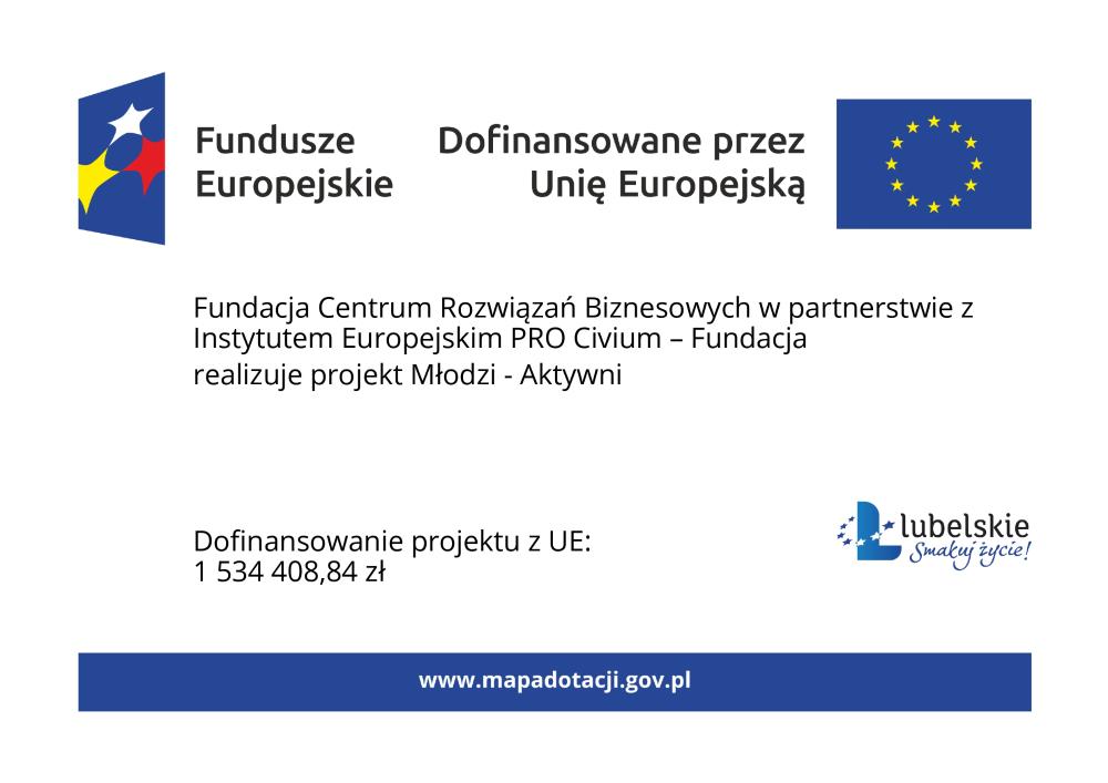 Projekt realizowany jest przez Fundację Centrum Rozwiązań Biznesowych w partnerstwie z Instytutem Europejskim PRO CIVIUM - Fundacja w Lublinie.
